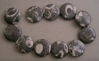 Ammonite flat round beads Catalog 1658 11 beads 35mm 945 carats $56(SOLD) |