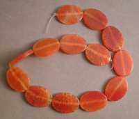 Fire agate flat oval beads Catalog 1664 13 beads 30 x 24mm 392 carats $26(SOLD) |