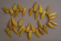 29 yellow agate tooth beads Catalog 1670 29 beads 35 x 11mm 620 carats $24(SOLD) |