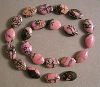 Rhodochrosite drum oval beads Catalog 1695 16 in. 10 x 7mm 118 carats $59(SOLD) |