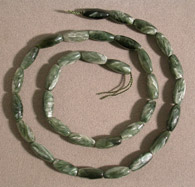 Seraphinite tapered barrel beads Catalog 1692 15.5 in. 10 x 5mm 79 carats $45(SOLD) |