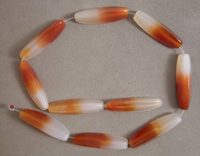 Carnelian triangular barrel beads Catalog 1964 15 in. 40 x 11mm 290 carats $12(SOLD) |