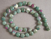 Ruby zoisite coin beads Catalog 1983 16 in. 10 x 6mm 188 carats $32(SOLD) |