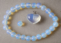 Opalite heart and round beads Catalog 1991 7.5 in. 8mm 110 carats $13(SOLD) |