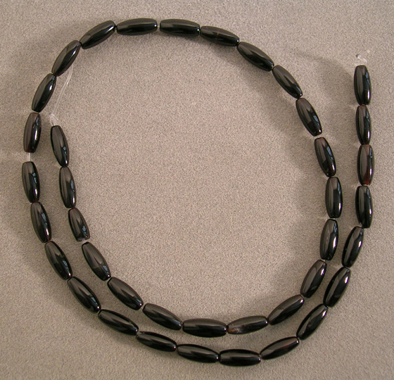 Supersize These long Turkish onyx beads beads have a high polish and jet black appearance.