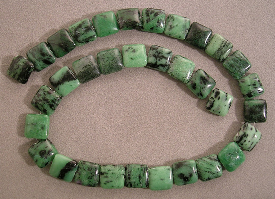 Mawsitsit jade flat square beads like these are sometimes called "chiclets". These beads are about the same size and shape as pieces of chewing gum by the same name.