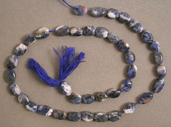 Supersize These African sodalite beads have deep blue with white patches and swirls.