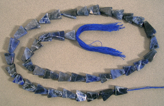 Supersize These trapezoid shaped sodalite beads are drilled the long way.
