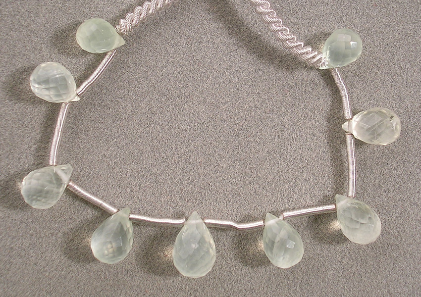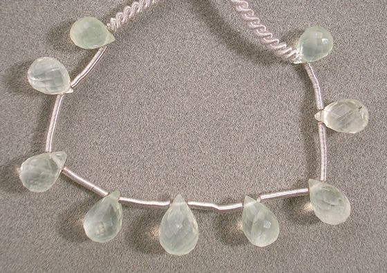 Prehnite briolette beads Catalog 1735 9 beads 8.8 x 6mm to 6.5 x 4.5mm 11.5 carats $9(SOLD) |