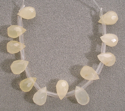 Supersize One dozen nicely translucient smaller yellow jade briolette beads.