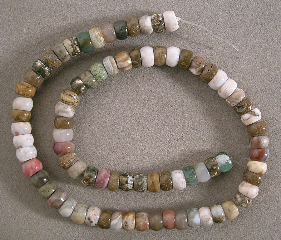 Supersize Typical ocean jasper mix of colors and patterns in wide rondelles.