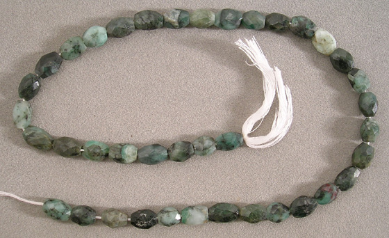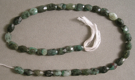 At the top this strand of emerald beads is spotlit and shows more faceting as well as a little more depth in the stones.