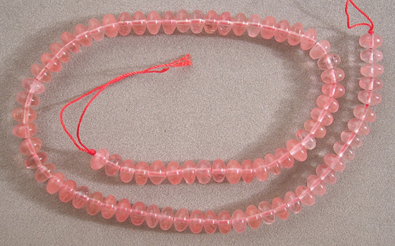 Pink tourmaline rondelle beads Catalog 1754 16 in. 8 x 5mm 160 carats $55(SOLD) |