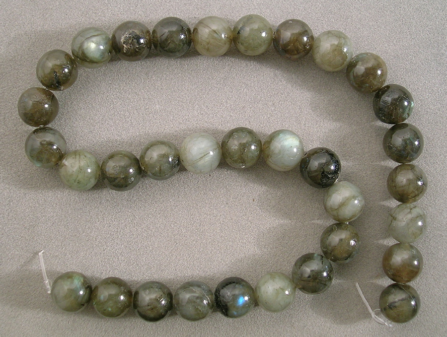 Labradorite round beads Catalog 1759 15.5 in. 11 to 12mm diameter 415 carats $23(SOLD) |