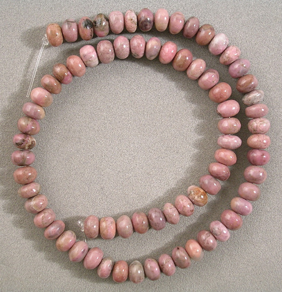 Supersize Rondelle beads from pale pink Mexican rhodonite.