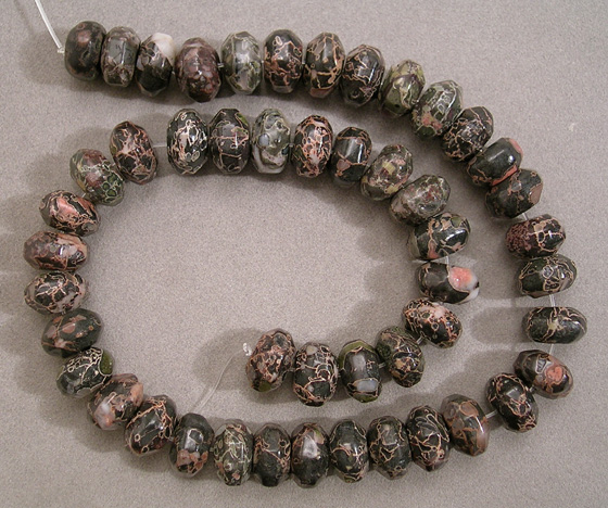 Indian jasper rondelle beads Catalog 1778 15.5 in. 14 x 8mm diameter 600 carats $28(SOLD) |