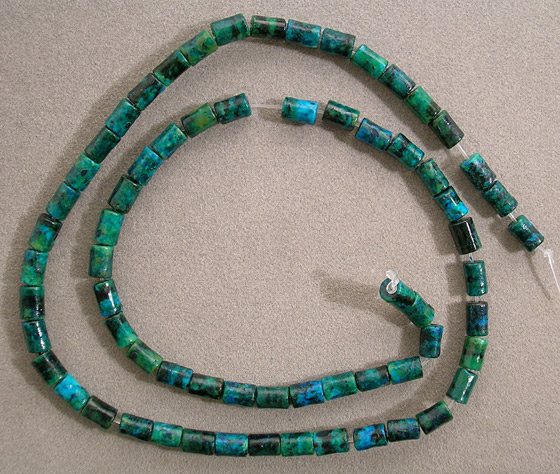 Supersize Small chrysocolla tube or cylinder beads in rich dark blue green hues.