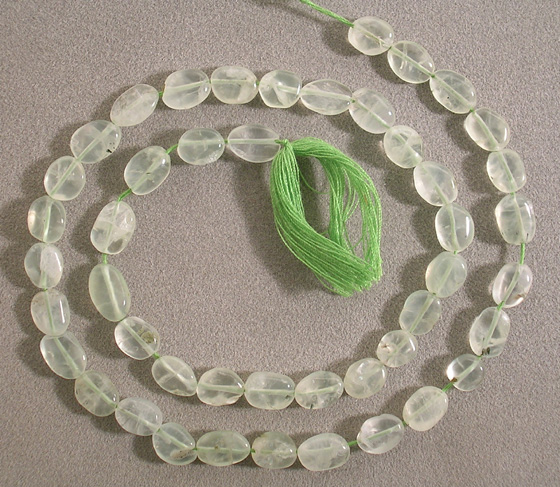 Supersize These prehnite small ovals resemble nuggets. We have one other strand of beads like this.