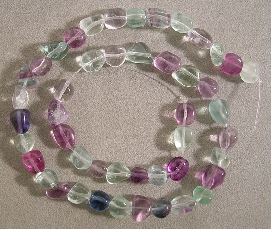Fluorite tumbled nugget beads Catalog 1815 15.5 in. 10 to 8 by 8 to 6mm 205 carats $14(SOLD) |
