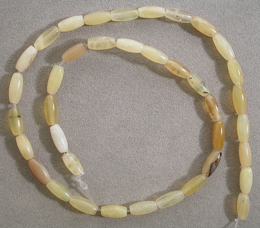 Supersize Several hues of African yellow opal in these rice beads that could also be called barrels since they're large for rice.