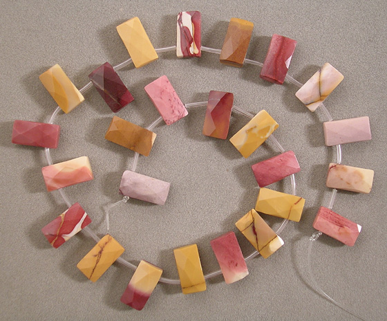 Mookaite jasper faceted rectangle beads Catalog 1835 25 beads 17 x 9mm 200 carats $22(SOLD) |