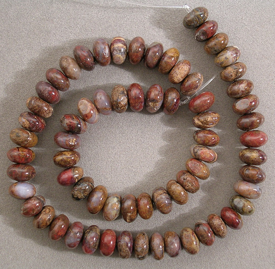 Supersize Pietersite rondelle beads, dark red and brown with quartz windows.