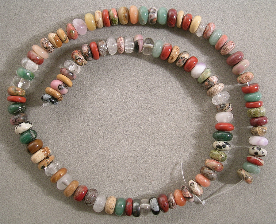 Supersize This strand of gemstone beads has several semi precious gemstone varieties.