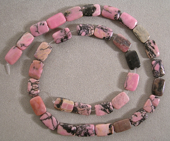 Rhodonite rectangle beads Catalog 1854 15.5 in. 12 x 8mm 150 carats $15(SOLD) |