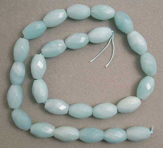 Amazonite faceted barrel beads Catalog 1856 16.5 in. 16 x 10mm 282 carats $25(SOLD) |