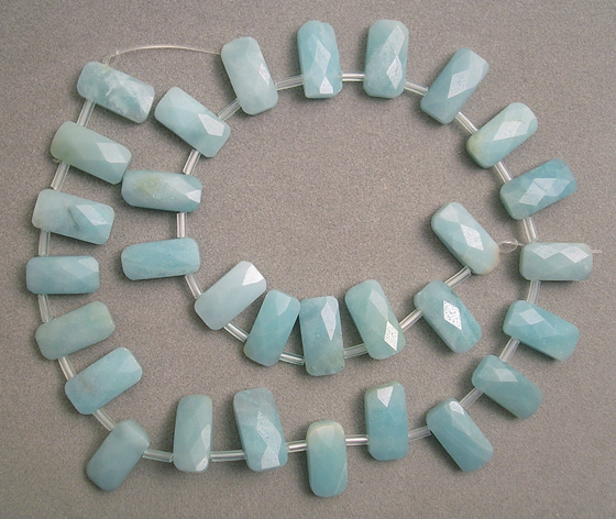 ![]() Supersize Strand of thirty amazonite faceted rectangle beads which have been drilled as briolette beads. |