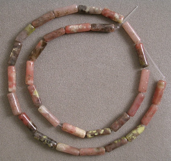 Unakite jasper tube beads Catalog 1890 15 in. 14 x 4mm 62 carats $9(SOLD) |