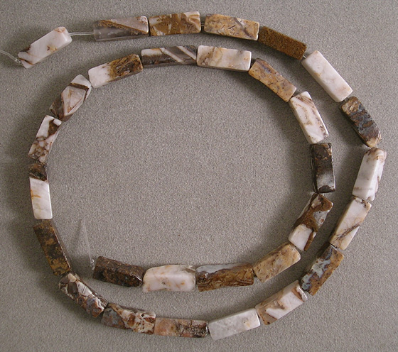 Conglomerate jasper rectangle cube beads Catalog 1891 16 in. 12 x 5mm 107 carats $9(SOLD) |