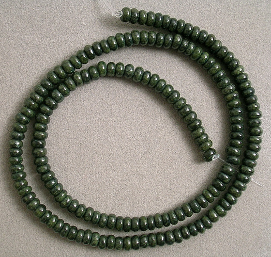 Serpentine rondelle beads Catalog 1898 15.5 in. 5 x 2mm 55 carats $11(SOLD) |