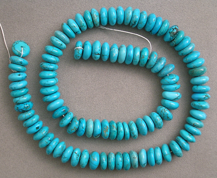 Turquoise rondelle beads Catalog 1906 16.5 in. 10 x 5mm 315 carats $32(SOLD) |