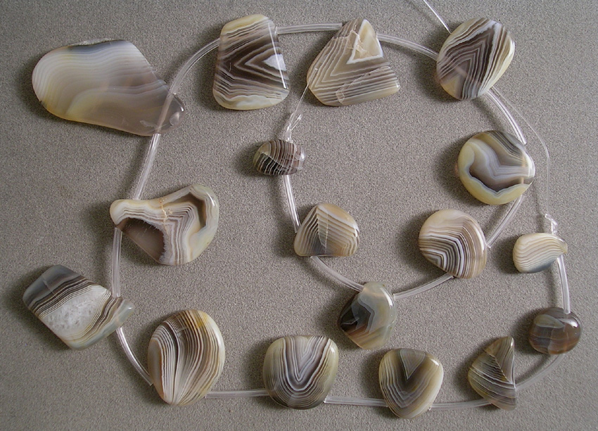 Botswana agate slice beads Catalog 1909 17 beads 12 x 9mm to 38 x 20mm 228 carats $18 |