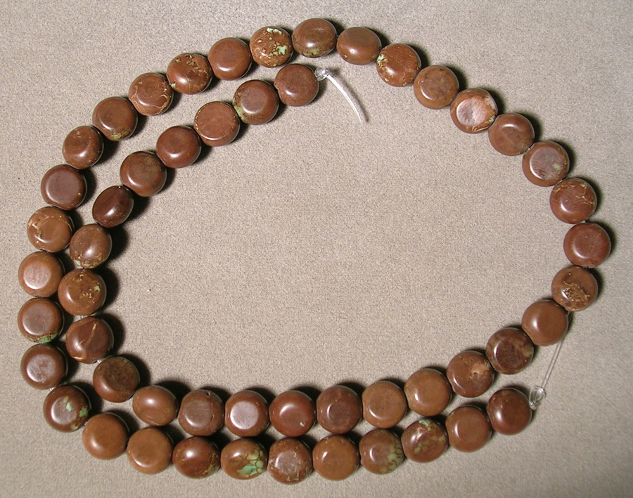 Supersize Copper turquoise coins Catalog 1451 16 in. strand 8mm 125 ct. $13(SOLD) |