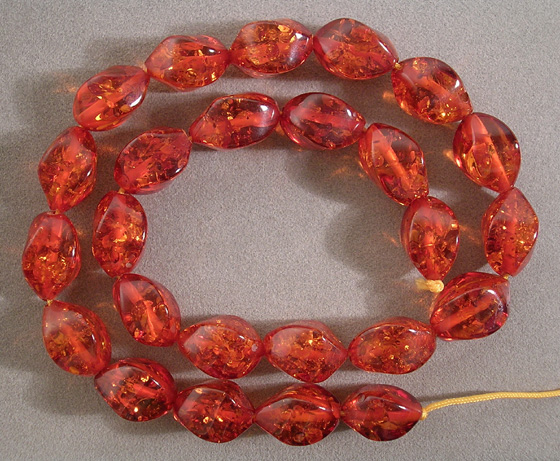 Amber twist beads Catalog 1912 16.5 in. 10 x 15mm to 11 x 17mm 171 carats $22(SOLD) |