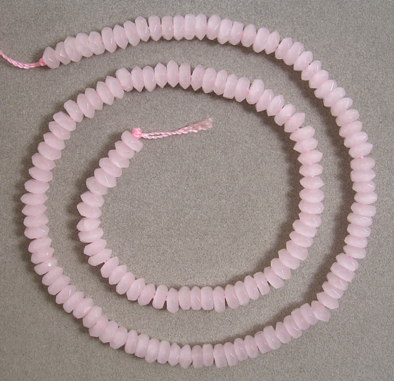 Pink chalcedony rondelle beads Catalog 1920 15.5 in. 6 x 2.5mm 90 carats $32(SOLD) |