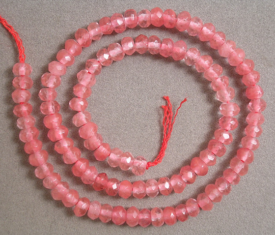 ![]() Supersize Wider cherry quartz rondelles with sharp faceting and gemmy glitter. Would go well with the previous strand. |