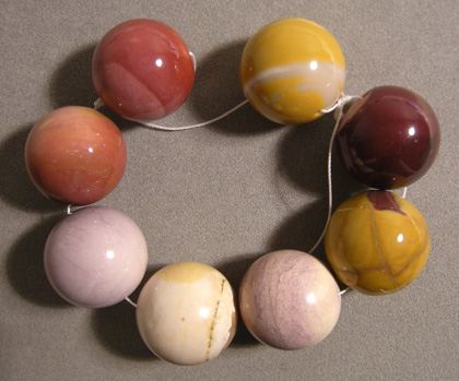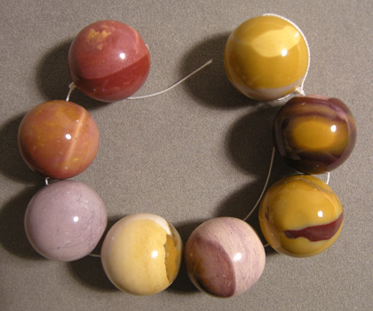 ![]() ![]() Eight Brazilian moukite round pendant beads on strand. |