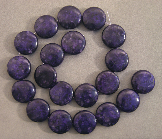![]() Supersize Large coin or disc beads from dark purple to blue gemstone--most likely dyed. |