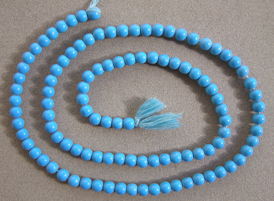 Blue turquoise round beads Catalog 1955 14.5 in. 3 to 4mm 31 carats $15 |