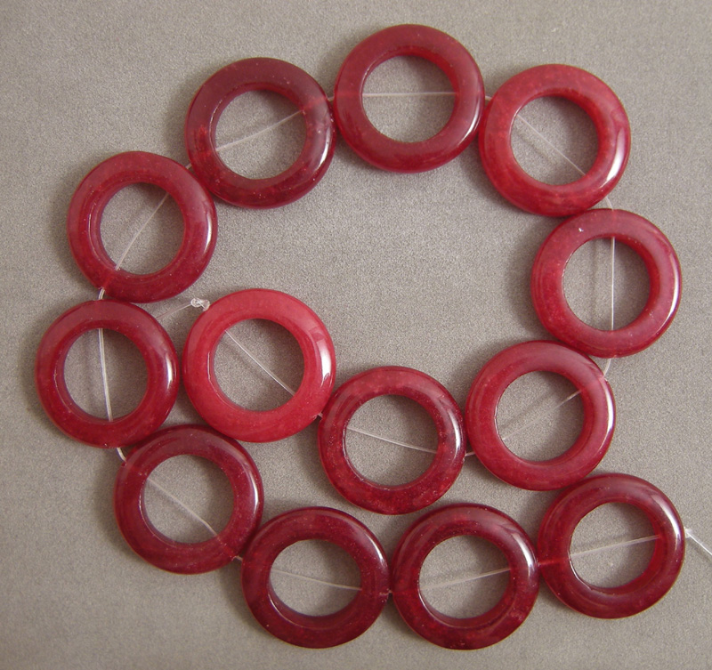 Red jade open circle beads Catalog 1961 15 in. 30mm 347 carats $18(SOLD) |