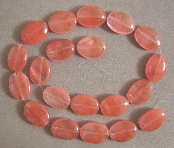 Created pink quartz oval beads Catalog 1962 15.5 in. 20 x 15mm 232 carats $16 |