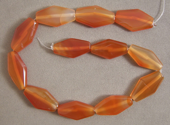 ![]() Supersize Large diamond shaped beads from orange colored carnelian. |