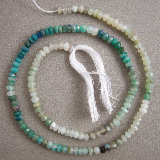 Peruvian opal rondelle beads Catalog 1976 16 in. 4mm 37 carats $35(SOLD) |