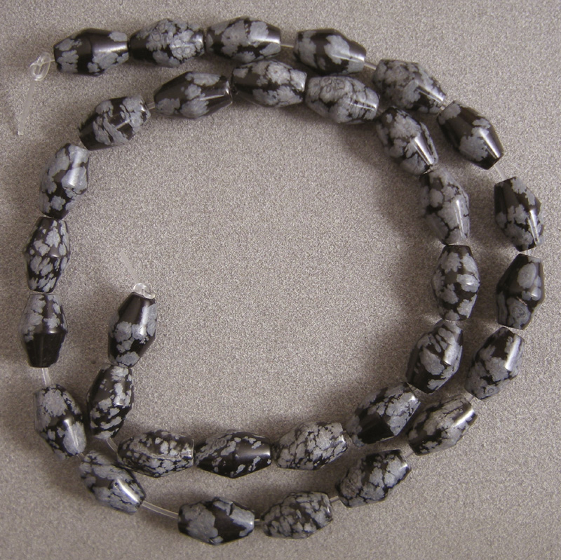 Snowflake obsidian bicone beads Catalog 1981 15.5 in. 12 x 8mm 150 carats $19 |