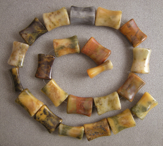 Valanite jasper flat bone beads Catalog 1988 15.5 in. 18 x 13 x 7mm 264 carats $32(SOLD) |