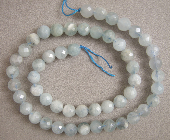 Aquamarine faceted round beads Catalog 1997 15 in. 8mm 148 carats $24(SOLD) |