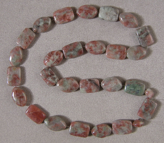 Ruby fuschite beads Catalog 2015 15 in. 15 x 10mm navettes 14 x 10mm rectangles 205 carats $35 |
